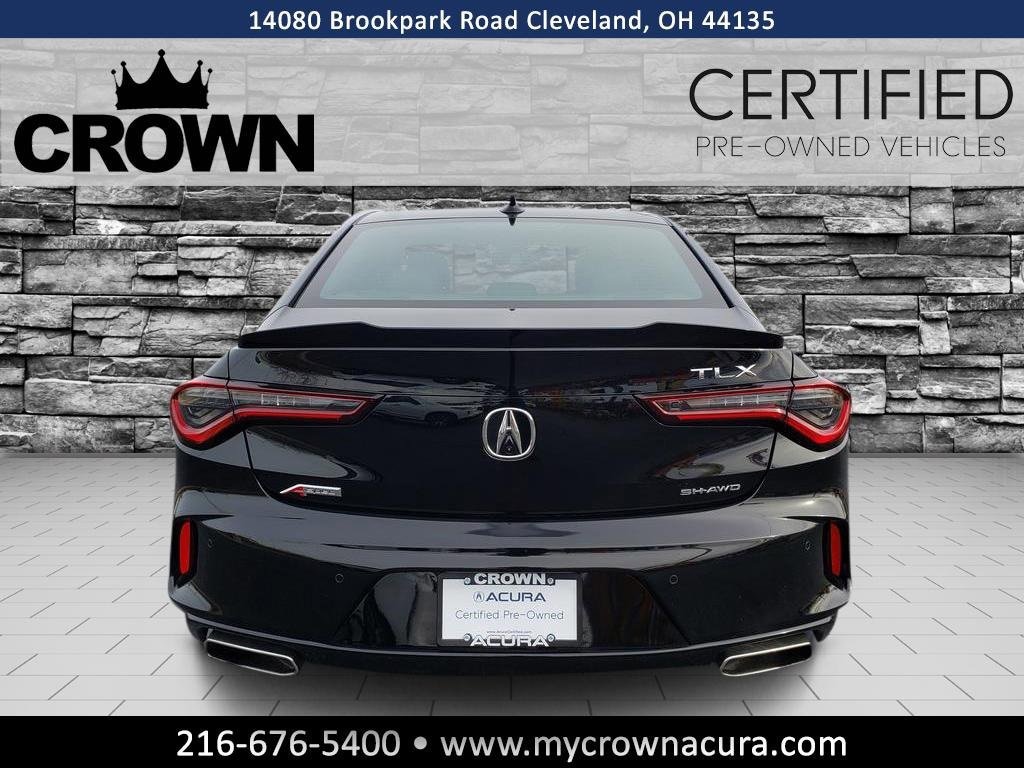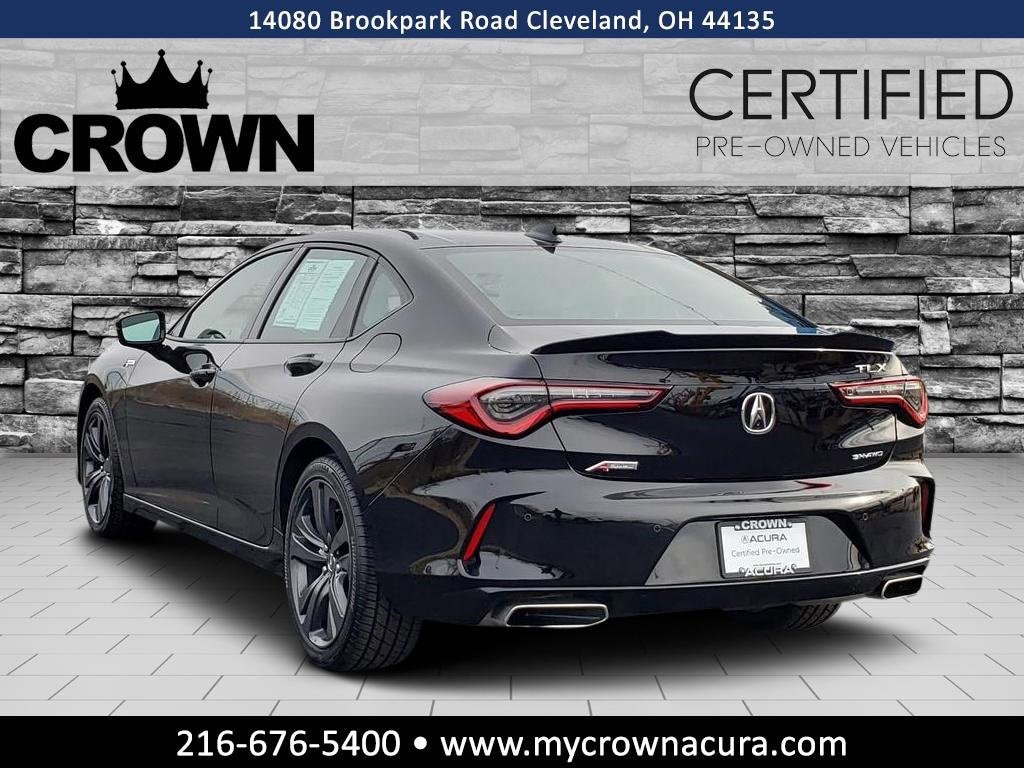 Certified. Majestic Black Pearl 2023 Acura TLX A-Spec Package 4D Sedan 2.0L DOHC 10-Speed Automatic AWD CARFAX One-Owner. Clean CARFAX.Precision Certified Details: * Warranty Deductible: $0 * Limited Warranty: 24 Month/100,000 Mile (whichever comes first) after new car warranty expires or from certified purchase date * 182 Point Inspection * Transferable Warranty * Powertrain Limited Warranty: 84 Month/100,000 Mile (whichever comes first) from original in-service date * Vehicle History * Roadside Assistance * 1st Scheduled Maintenance is Free, Complimentary 3-month AcuraLink trial, Complimentary 3-month SiriusXM Radio Service. Includes Trip Interruption, Rental Vehicle Reimbursement and Concierge ServiceEvery Acura Certified vehicle is reconditioned, inside and out, to create a certified luxury ownership experience. All vehicles are under six years old with less than 80,000 miles and have an additional 24-month/50,000 mile Certified Limited Warranty. Each vehicle must also pass a 182-point vehicle inspection and is covered by an extensive Roadside Assistance program.Odometer is 2689 miles below market average! 21/29 City/Highway MPGCrown Acura serves drivers of the greater Cleveland area with premium service for luxury Acura vehicles. Our certified sales specialists and repair technicians work hard to make sure you have the best experience possible. We look forward to seeing you soon! *Based on 2020 EPA mileage ratings. Use for comparison purposes only. Your actual mileage will vary, depending on how you drive and maintain your vehicle, driving conditions, battery pack age/condition (hybrid only) and other factors.