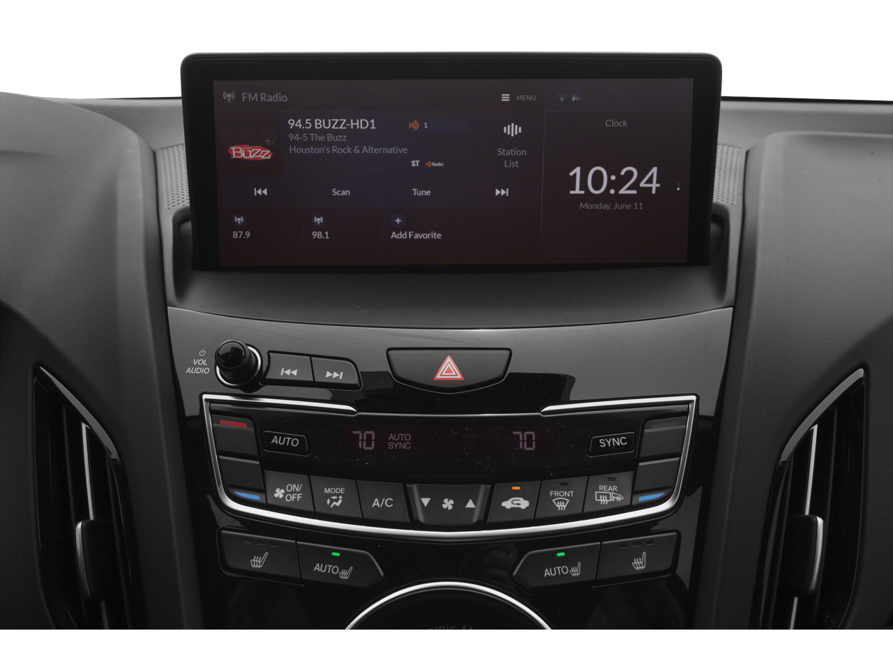 - Radio: Acura Premium Audio System -inc: 9 speakers, 7" color Multi-Information Display (MID), True Touchpad Interface, 10.2" HD dual-content center display, HD Radio, AcuraLink Connected Services, WiFi hotspot capability, natural language voice recognition, Apple Carplay Integration, Android Auto Integration, Siri Eyes Free iPhone only, Bluetooth® HandsFreeLink wireless telephone interface, SiriusXM satellite radio, USB audio interface w/smartphone integration, Bluetooth® streaming audio, MP3/auxiliary input jack, Speed-Sensitive Volume Compensation (SVC), 1 front USB audio integration and 1 USB charge port and Maintenance Minder system